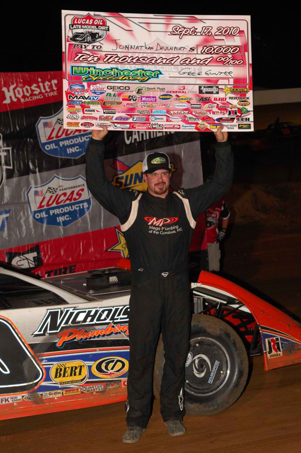 Jonathan wins his first Lucas Oil Series event at the Winchester (VA) Speedway on September 17, 2010